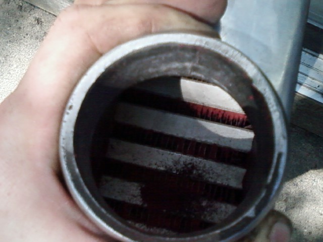 here are the carnage pics from when the piece of rubber fell out of my air filter. the pics of the intercooler are after I tried flushing it out with with my hose