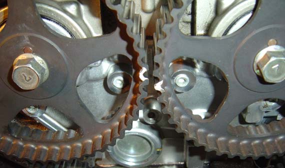 I have the car in my garage. I took the front apart and found that the timing is off like I expected. Here is a pic. Looks like the intake cam is behind. Would this cause the bad compression? The valves not sealing, thus loosing alot of compression? Do you think the valves are smashed or they are just not sealing the CC?