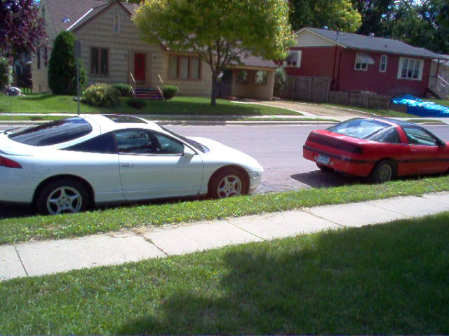 My name is Brent Byers and I live in Mankato MN, I've had my white 95 gsx for almost three years now and it's my daily mule, it has a salvage title and isn't in the best shape but I rock it any way. I've done some basic stuff to it like: head gasket, larger injectors, evo III 16g, supra sidemont intercooler, mix of hard intercooler pipes, ACT 2600 clutch, safc 2 and an intake. I work at a used car dealership in town here and I've lived here since I was in 1st grade. Here are my cars and here is my cat for all you pussy lovers out there