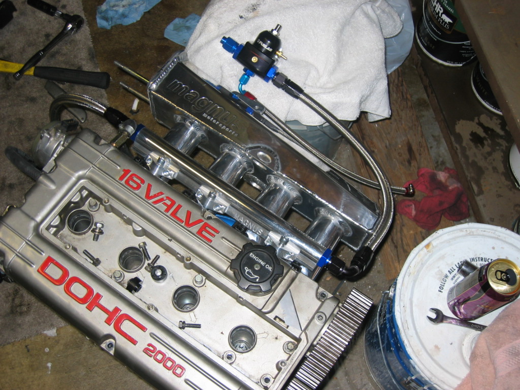 I love how it looks and it should work even better. I plan on getting my Valve cover powercoated black with polished letters, and getting a billet spark plug cover. Im going to try and keep most of my engine bay chrome, black and blue. as long as i stick with the engine bay and things keep going towards the HP goal, while still looking good, then its not rice right? lol. No bodykits, no wood screws, No duct tape (jb weld is ok though. lol)