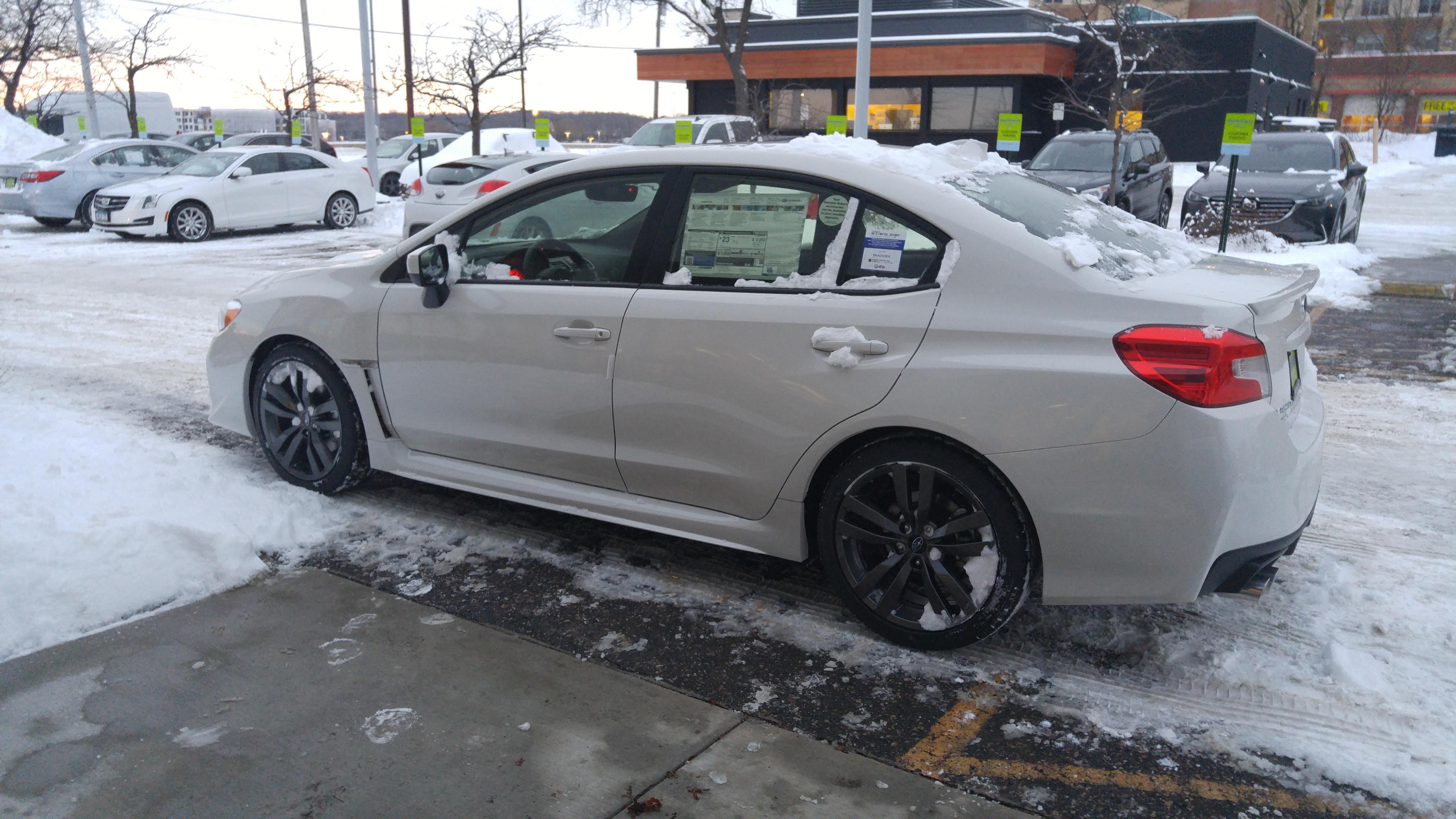 I got a really good deal on a 2017 Subaru WRX Premium. It was just received by the dealer so it only had 4 miles on it, so we know it wasn't beaten on during test drives. We decided to switch up the color and try something new this time, white! It has a few options, heated cloth seats, sunroof, 18" wheels, auto dimming mirror.