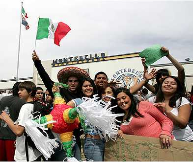 03/28 : Student protest in Whittier area students from Pioneer, California and Whittier high schools walked out of classes to protest the proposed federal immigration bill March 27, 2006. The protestors put up the Mexican flag over the American flag flying upside down at Montebello High.