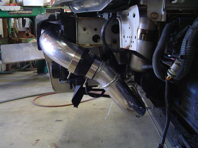 The way we installed the intercooler was to butt it up very close to the underside of the bumper support with plenty of clearance in front of it. This makes a high pressure area while the car is moving which will push air through the upper part of the intercooler that is not visable from the front.