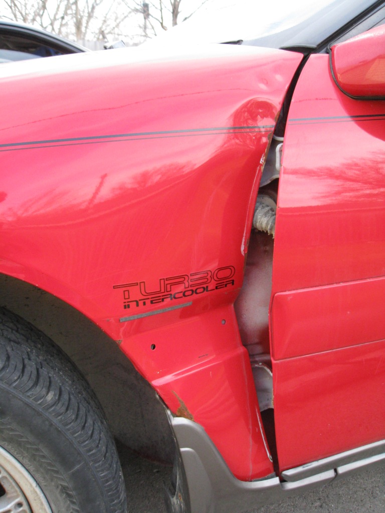 Exterior condition: The exterior has seen better days. The last owner had someone back into him, which is why the left fender, door, and quarter panels are dented up. There are mulitple spots of rust as is typical with DSMs of this era. The pictures outline the details pretty well.