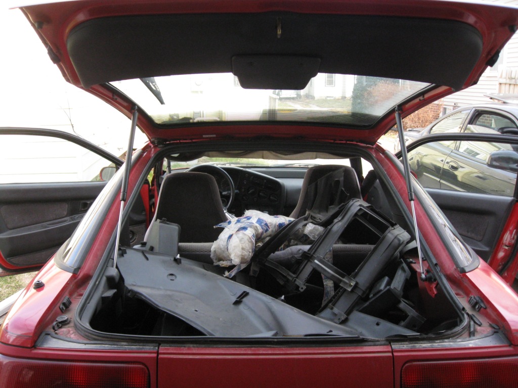 Interior condition: The interior is in ok condition. It had a junk alarm system installed in it when I purchased the car. I removed it about 2 years ago but used butt splices to link everything back together. Ideally, these splices will be removed and the connections soldered with heat shrink. The interior does need a good cleaning as I have never really cleaned it. The trim panels are disassembled in the hatch area.