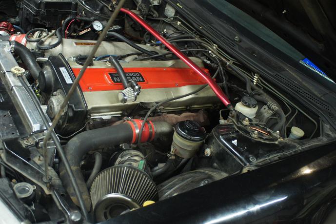 front mount nismo intercooler w/ hard piping. tial bov. greddy cast intake manifold (freshly ported and polished). VQ35 throttle body. solid motor and transmission mounts. stock turbo running 11 pounds. manual boost controller. 3" downpipe. posi rear end. tanabe strut tower bars. thats what i know for now.