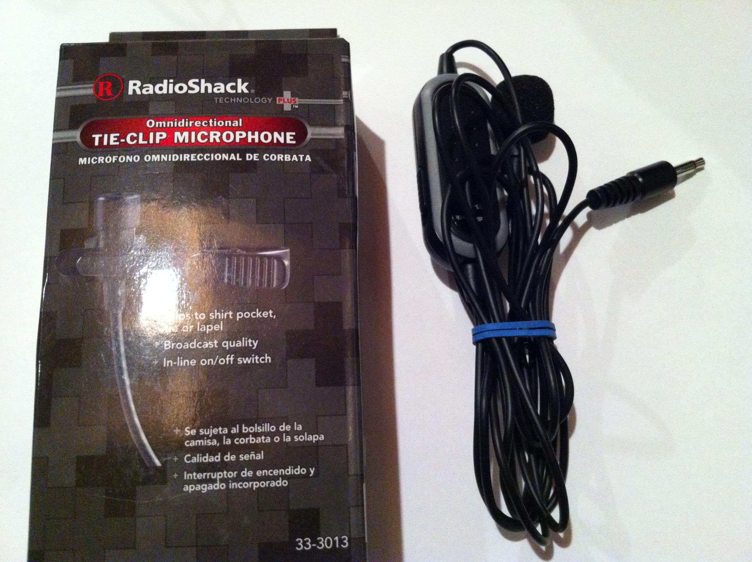 2. The mono mic I got from radio shack. Sounds pretty decent, runs on a watch battery. Only downside is that you have NO IDEA that your battery is dead until you play back the video and there's no audio. I buy cheap batteries and replace them often.