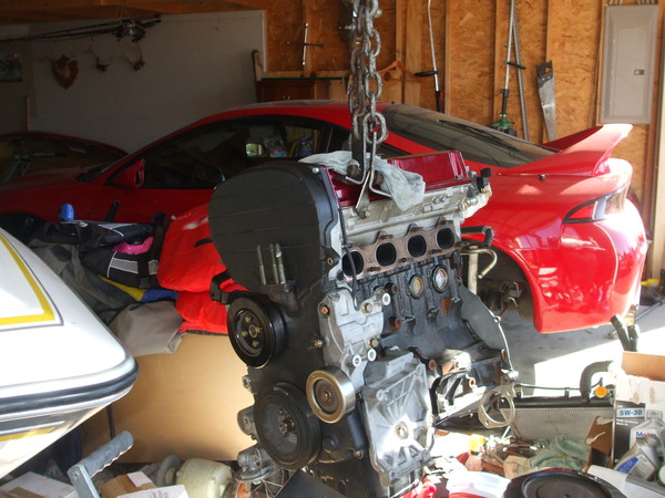Got a lot done today! motor and tranny are in the car and going to pick up the remainder of the gaskets from mitsu tomorrow. Still a lot to do but the hard part it over.