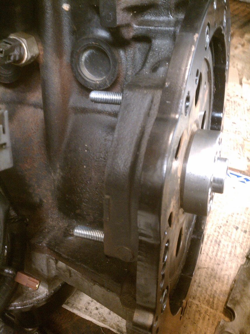 - Had two bolts welded into the adapter plate to act as studs for the starter. Drilled the start holes out. Worked out great. Thanks a million Kerry!