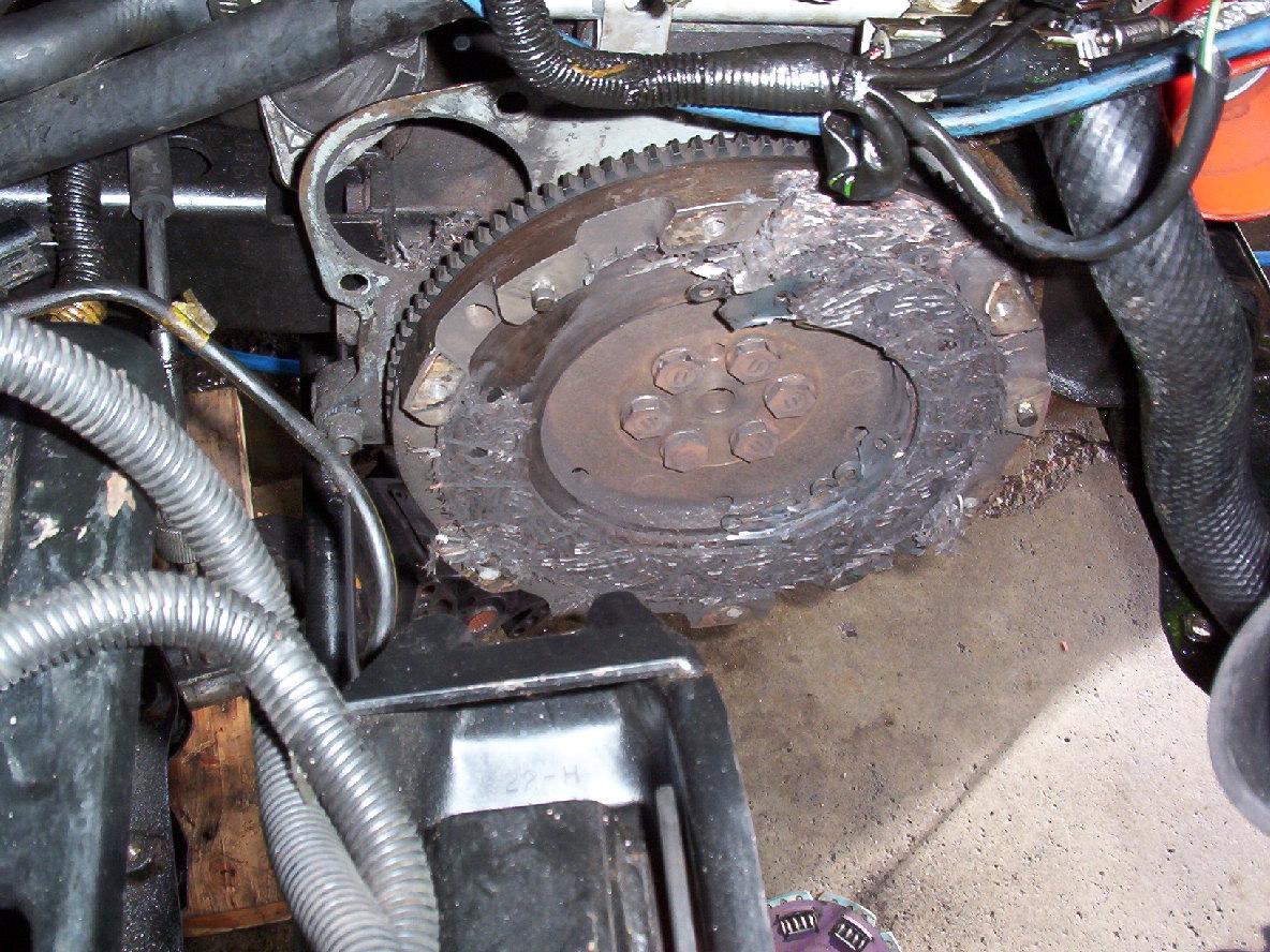 I was surprised the flywheel has no damage to it. The pressure plate cover is a little beat up on the outside, but Im sure I can get by with just a new disk.