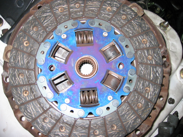 OK so i decided to take the day off and pull the tranny and then pull the pressure plate to check out the clutch (should have done this earlier) and heres what i found.