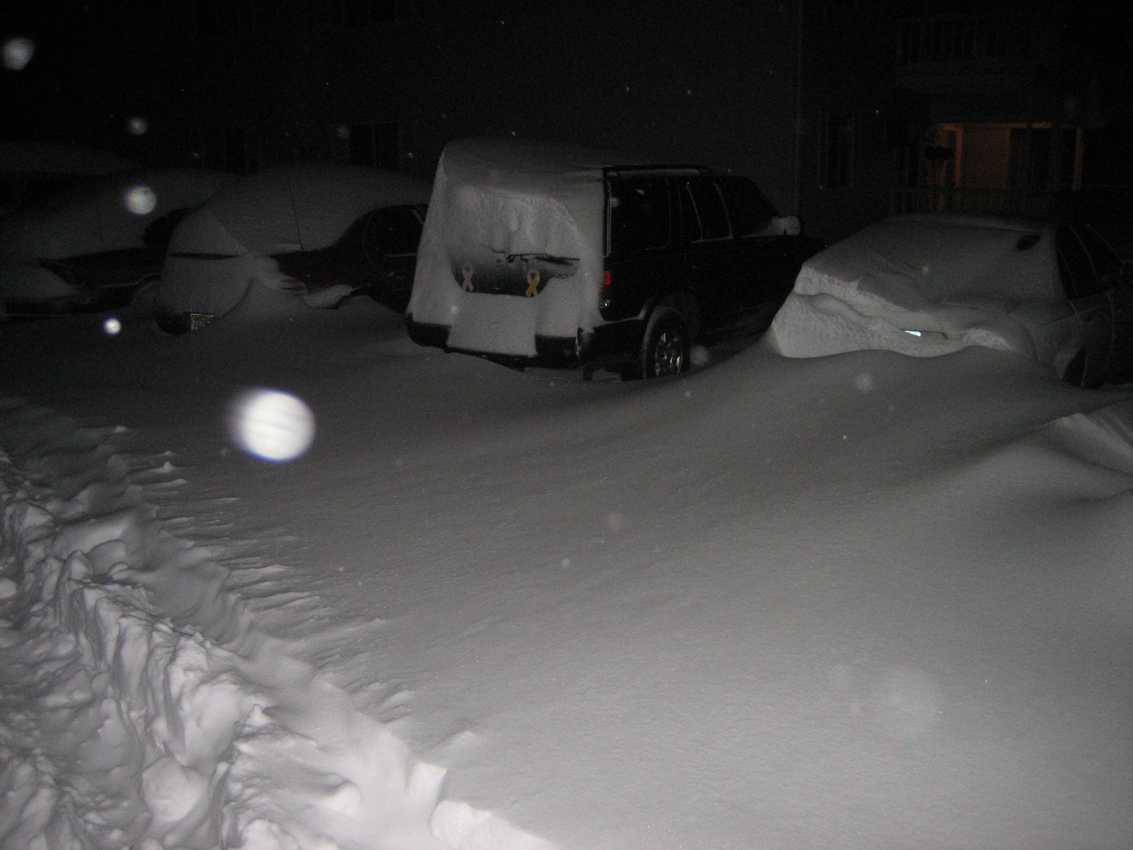 So in about 8hrs there is a good 2-1/2ft of snow on my deck. The left half of the deck there is nothing under it, the right half has my xmas tree still. HAHA.