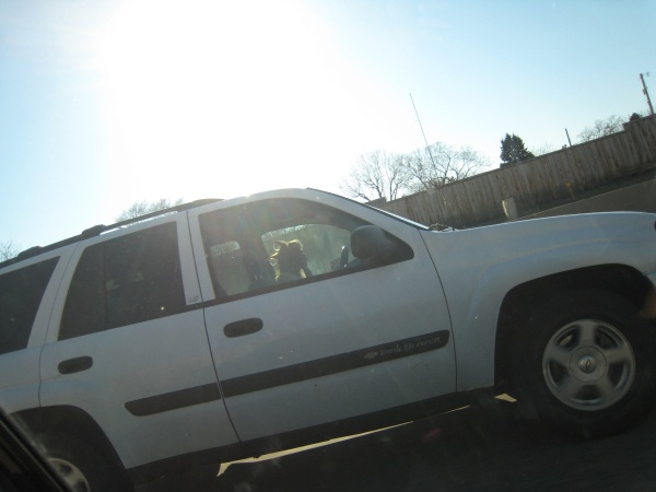 So Anna and I are on our way home after picking up Turbo & Anna screams all of a sudden, 'ROLLERS!!!! ROLLERS!!!' ...we slow down & I snap this pic. Some lady is putting in ROLLERS into her hair and doing her makeup while driving up hwy 100!!!!