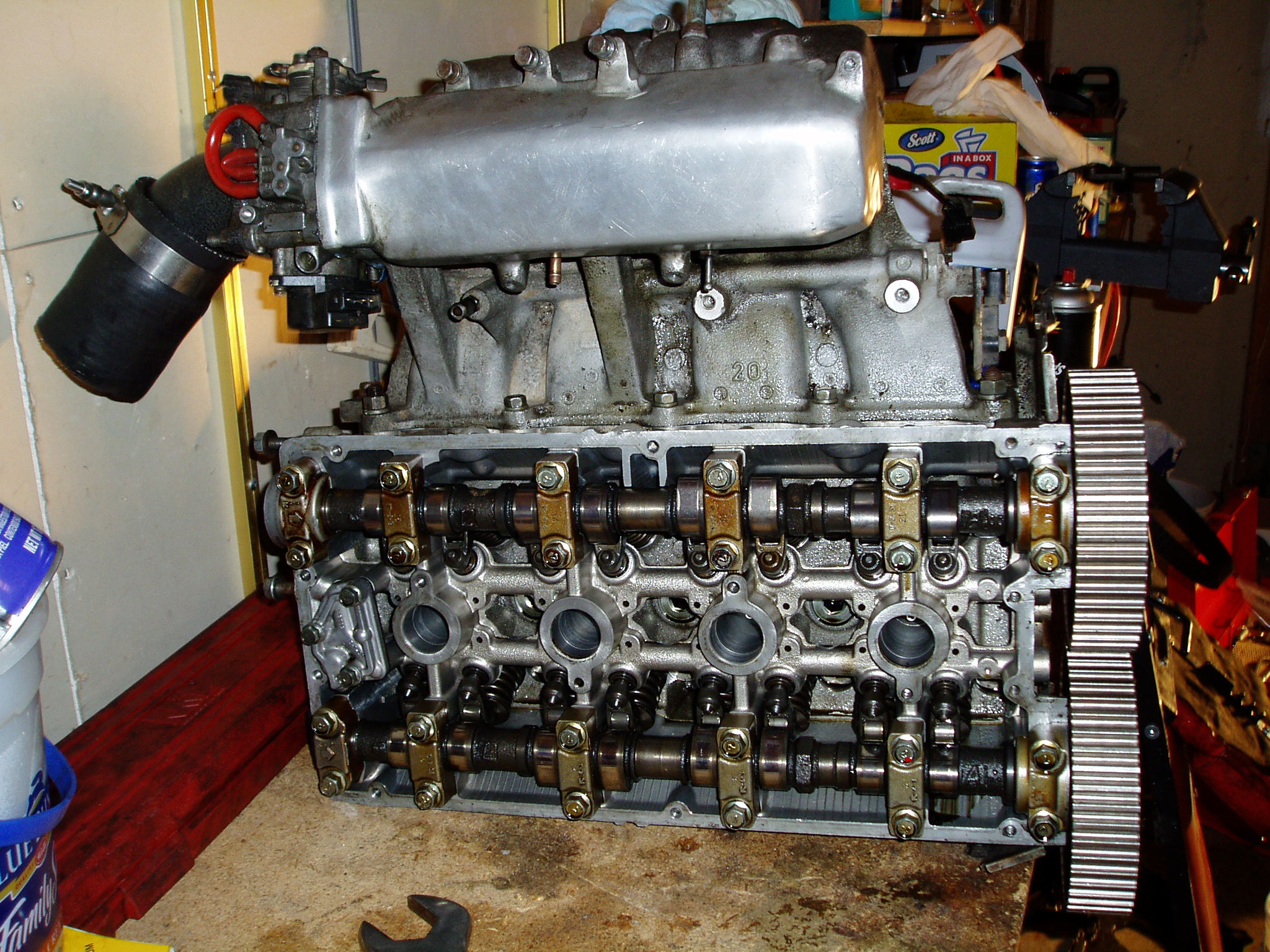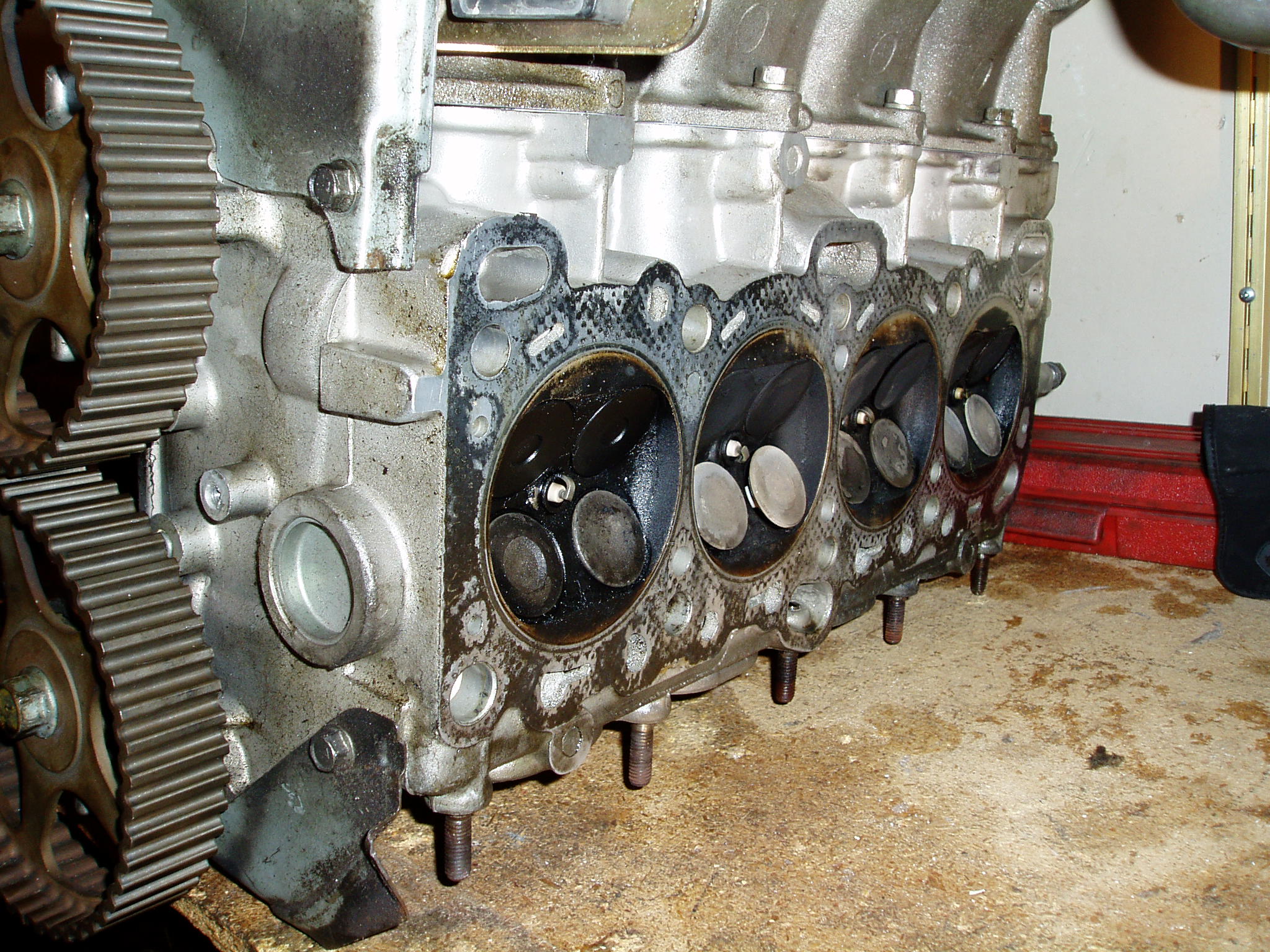 Ya that was all the gunk that was left over from a junk head gasket that I had to grind off. Now I am just lining up everything to slip on the timing belt and the cams want to turn about 2 to 3 turns off of their mark. Is there a trick to keep the cams and the crank in the correct location while you get the belt and tensioner on correctly?