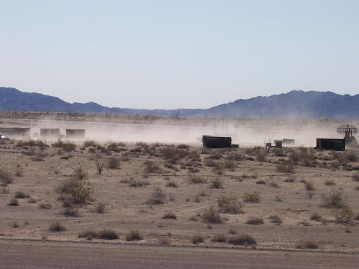 Also about the hangars. Yes there are hangars there, and a normal ATC tower. But I can guarantee you that this was the middle of nowhere. It's a tiny ARMY base called YPG. That's all that is there. The population of that base is prolly about 200. And we weren't even on the base really, we were just at their lil airfield. The base is where the ARMY jump school trains. So there are a couple hangars for their little prop airplanes. The base has a grocery store, a qwikemart thing, and one tiny dinner called the Cactus Cafe. That's it. And that was all about 15 minutes away from where we were. To me, that is the middle of nowhere. No showers, no bathrooms (they supplied us with portajohns tho!!), MRE's for food, sleep on a cot on a dirt floor, had a few sandstorms out there, it just isn't a whole lotta fun. But it was the last one I'll ever have to go on!!! YEAH OK WHAT!!!!