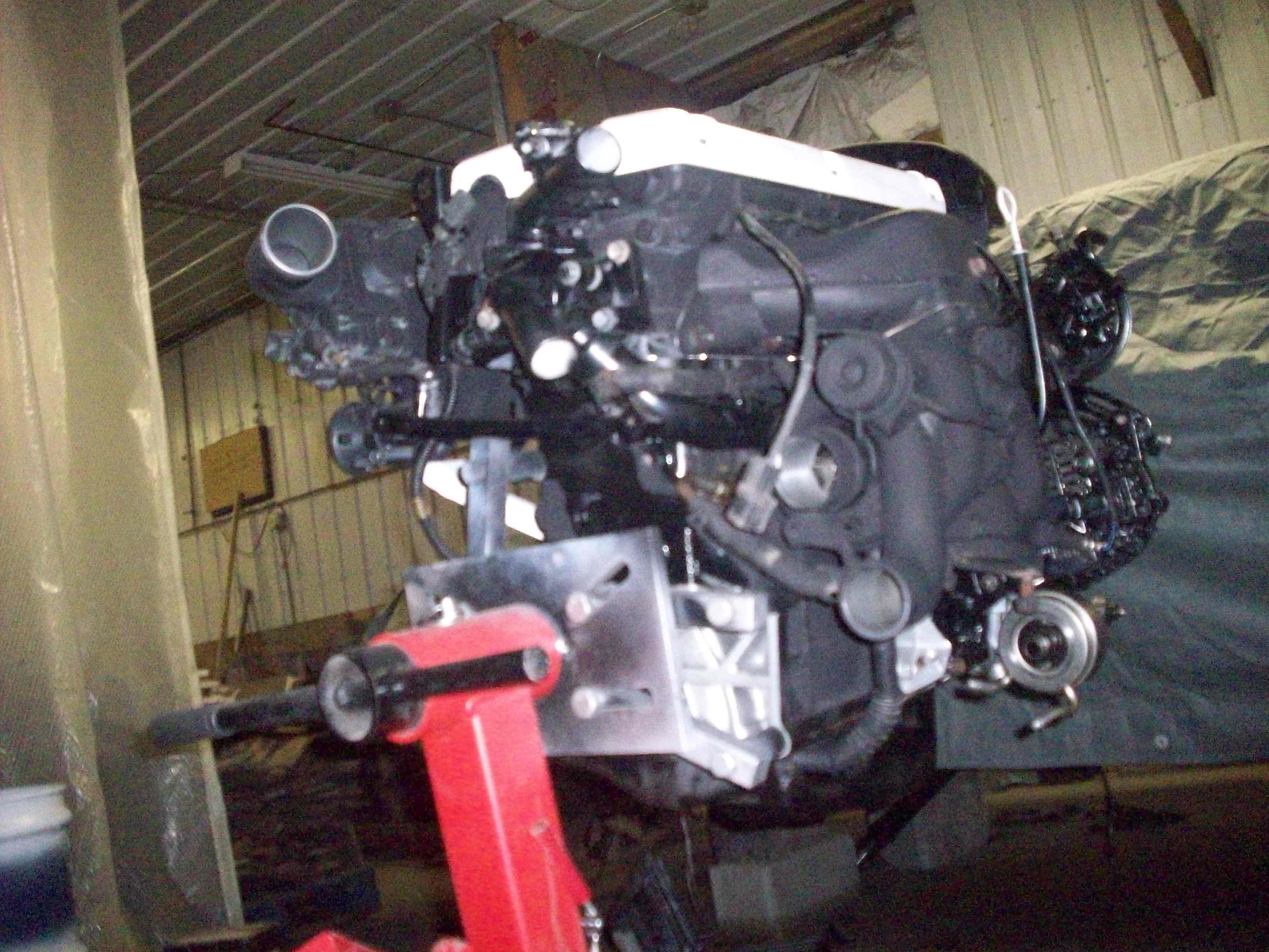 This is the 4g64/4g63 hybrid motor.. keeping the turbo stock for now until i get it all working right. its a big enough project the way it is.... This is the motor almost all put together.. still need to put on the galant cam gears and timing belt. then time it..