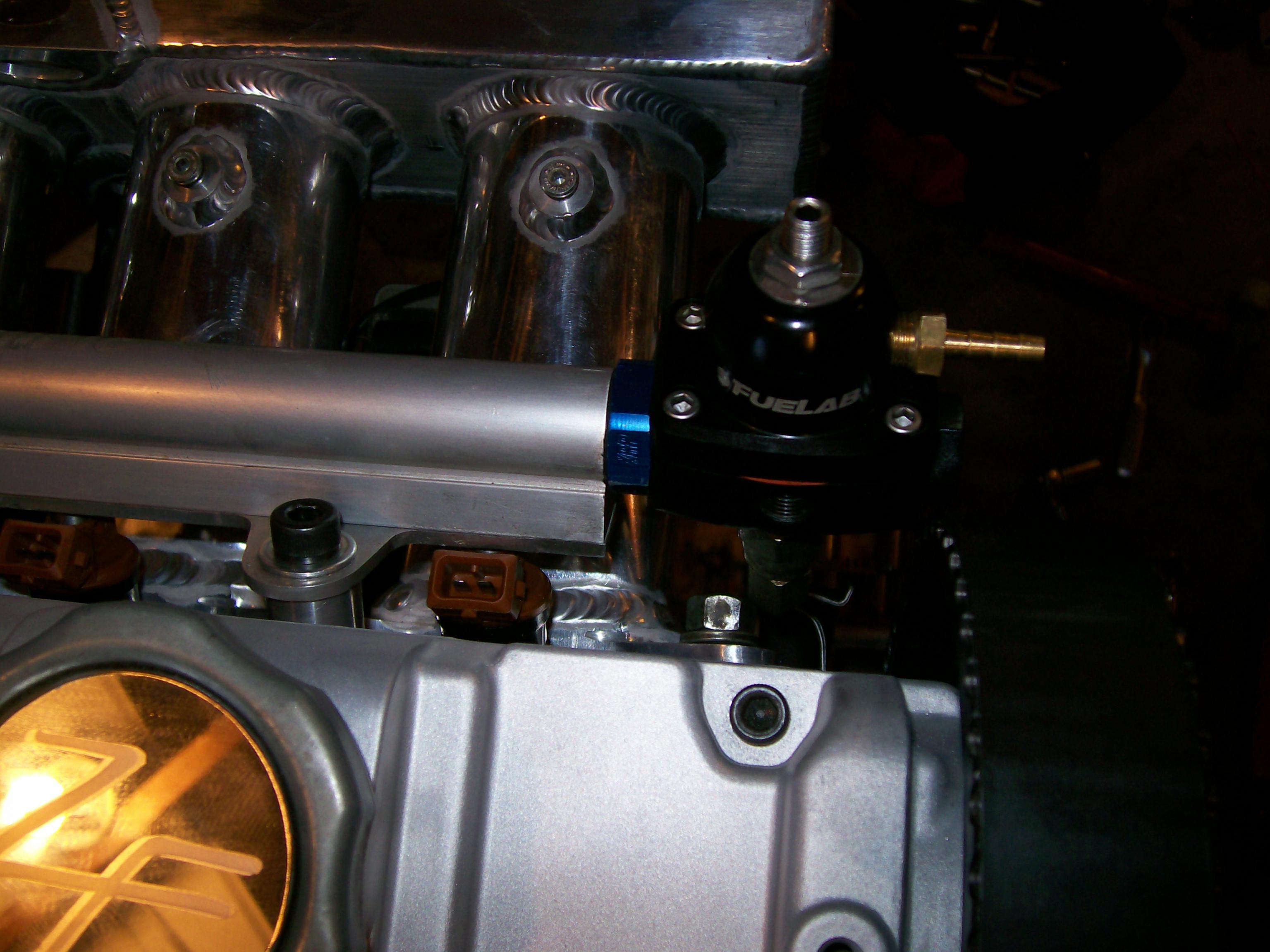 15 Gallon Summit Fuel Cell (mounted flushish with chassis, dual -10 feed bungs, stock fuel filler, and a custom dual -6 Walboro hanger that also has stock fuel level sender)