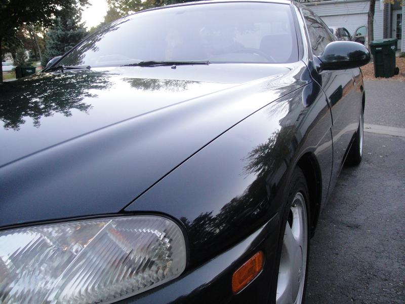 So here's some pics after the waxing. Also a pic of some clear coat issues the front bumper has. Once the performance stuff is done, I'll probably start doing more body work (new bumpers, spoiler, new paint, etc).