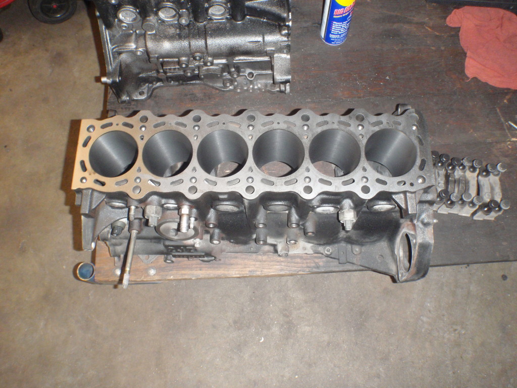 Block bored and surfaced ready to be honed. Pistons ready for coating. Freshly polish/balanced crank.
