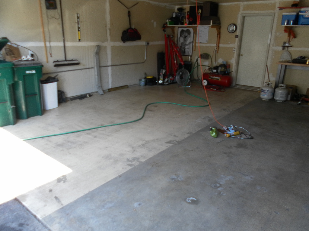 I parked her in the driveway. Cleaned out the garage where she'll be parked for the next couple months. Jacked her up and gave her a good underbody cleaning/degreasing before starting work.