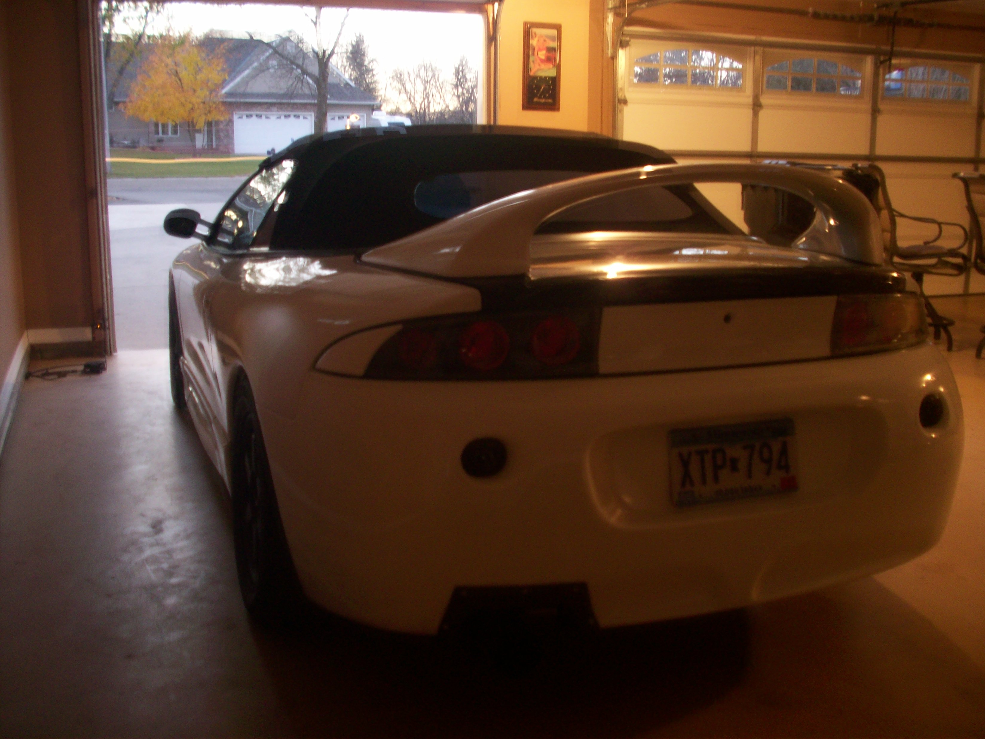 My 97 Eclipse GSX Spyder that began as a mitsu purple, 2.4L, SOHC, N/A, FWD, Automatic in 2008. It is going to be a Arctic White, AWD, 2.4L, DOHC, Turbo, Manual, with minor mods