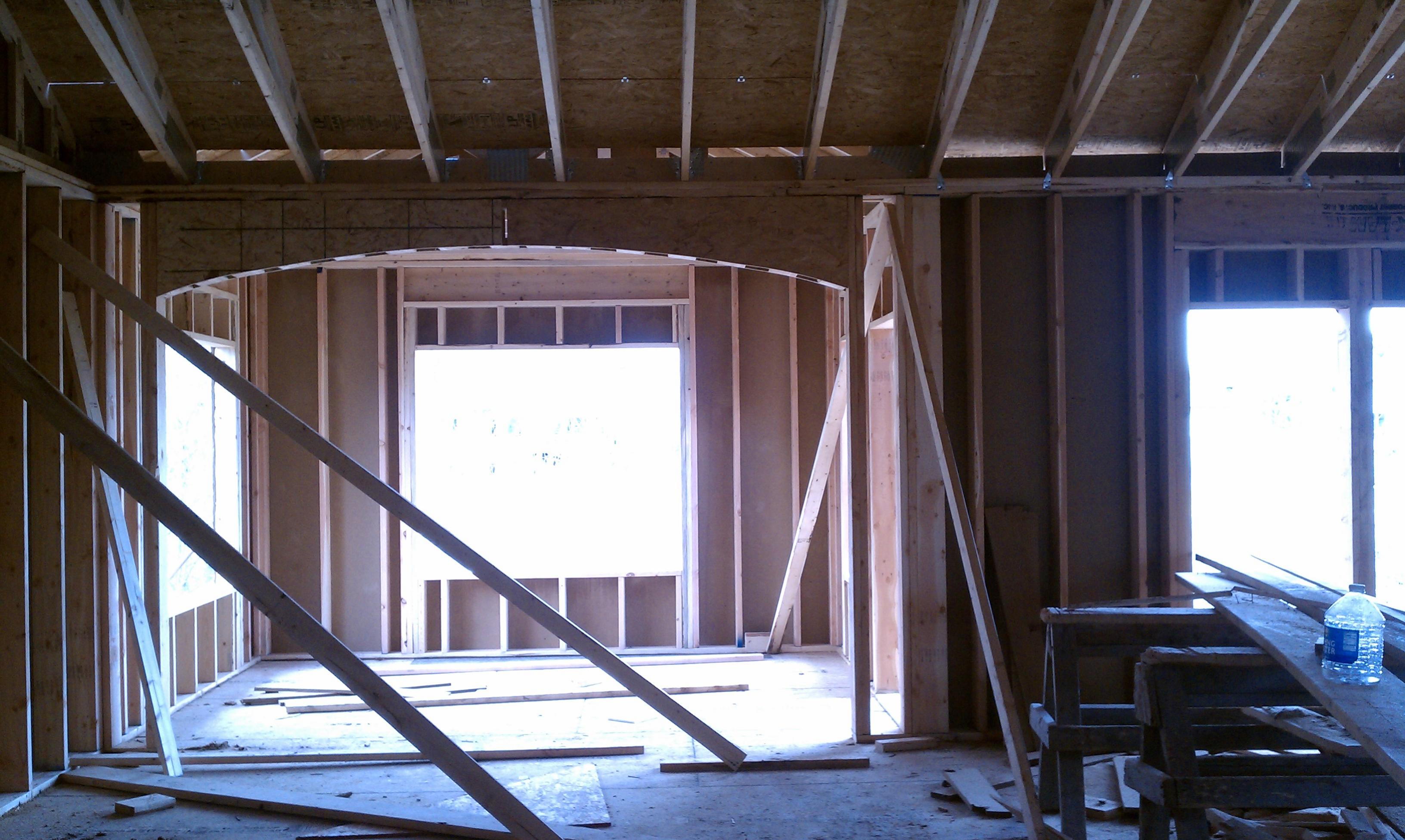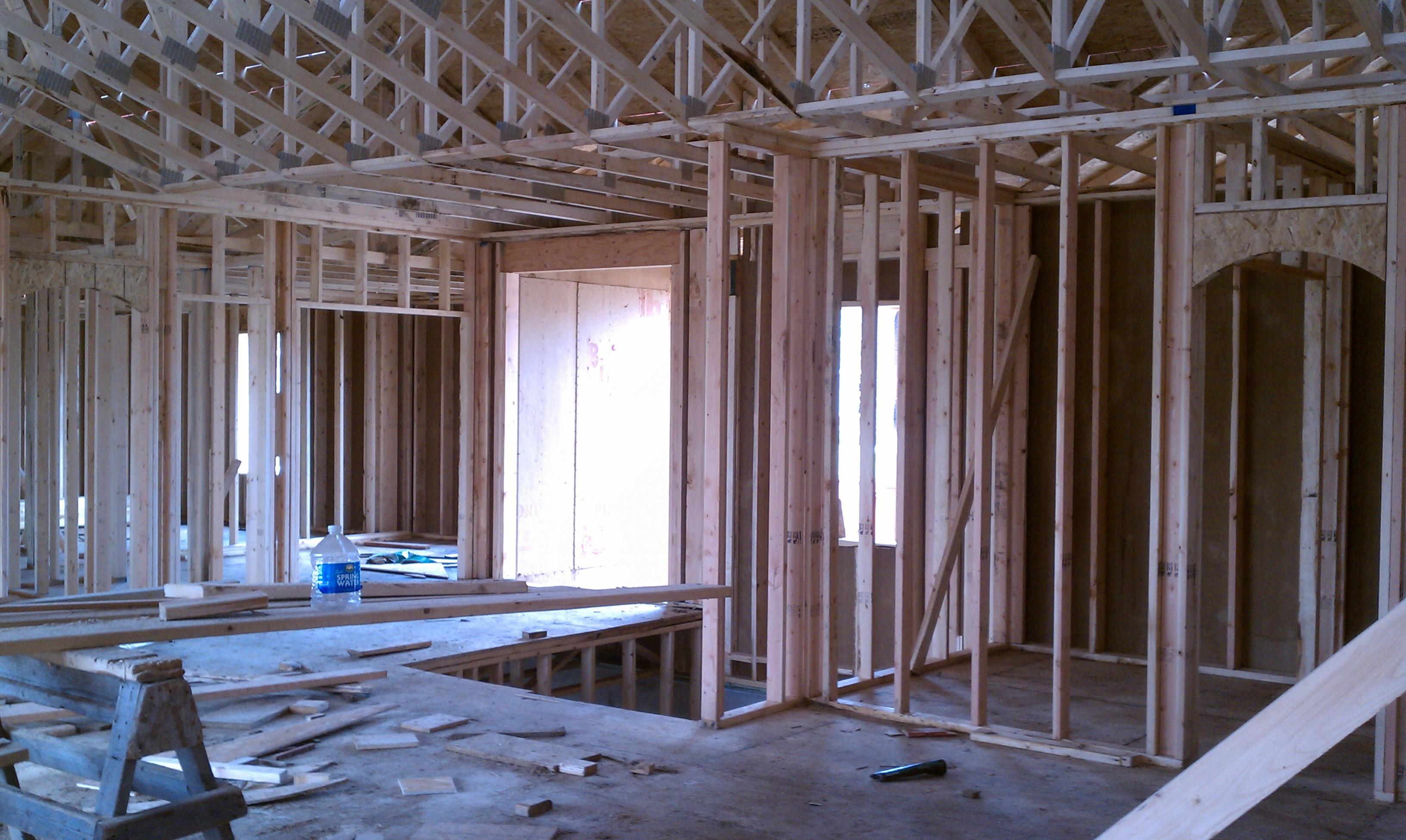 They are making some amazing progress. Every day we swing by and are amazed! The entire main level is pretty much framed. The roof is framed. It's starting to look like a house!