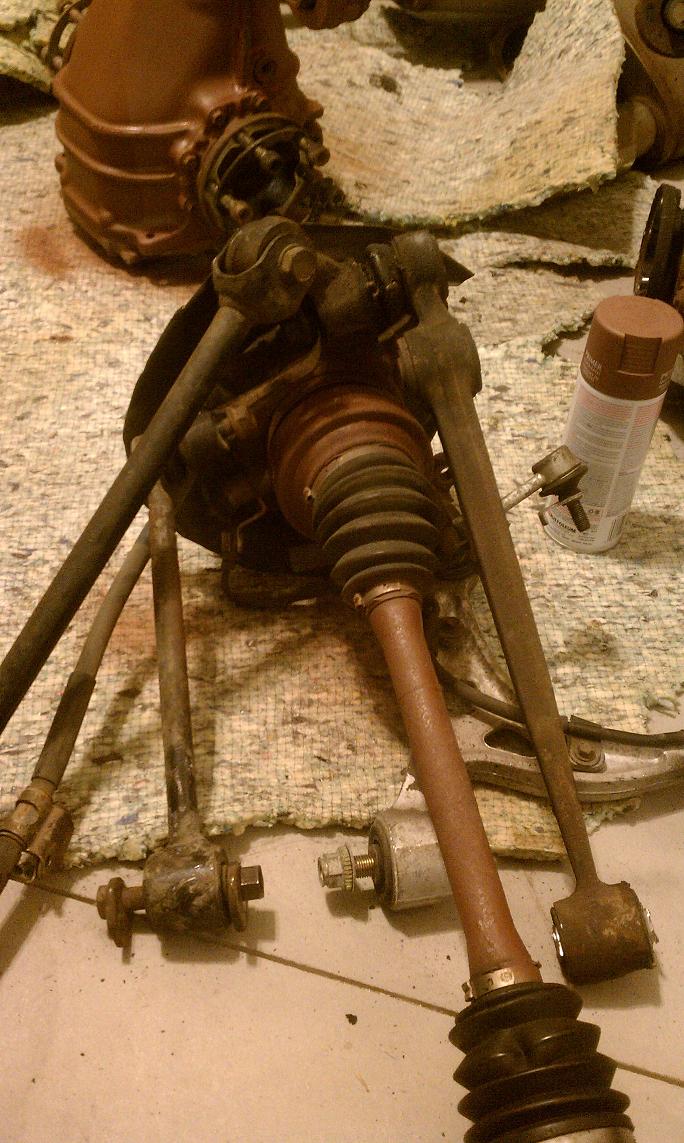 Rear Subframe is disassembled. Took about 2hrs longer than it needed to because one bolt was seized in one of the arms. Had to resort to the grinder.