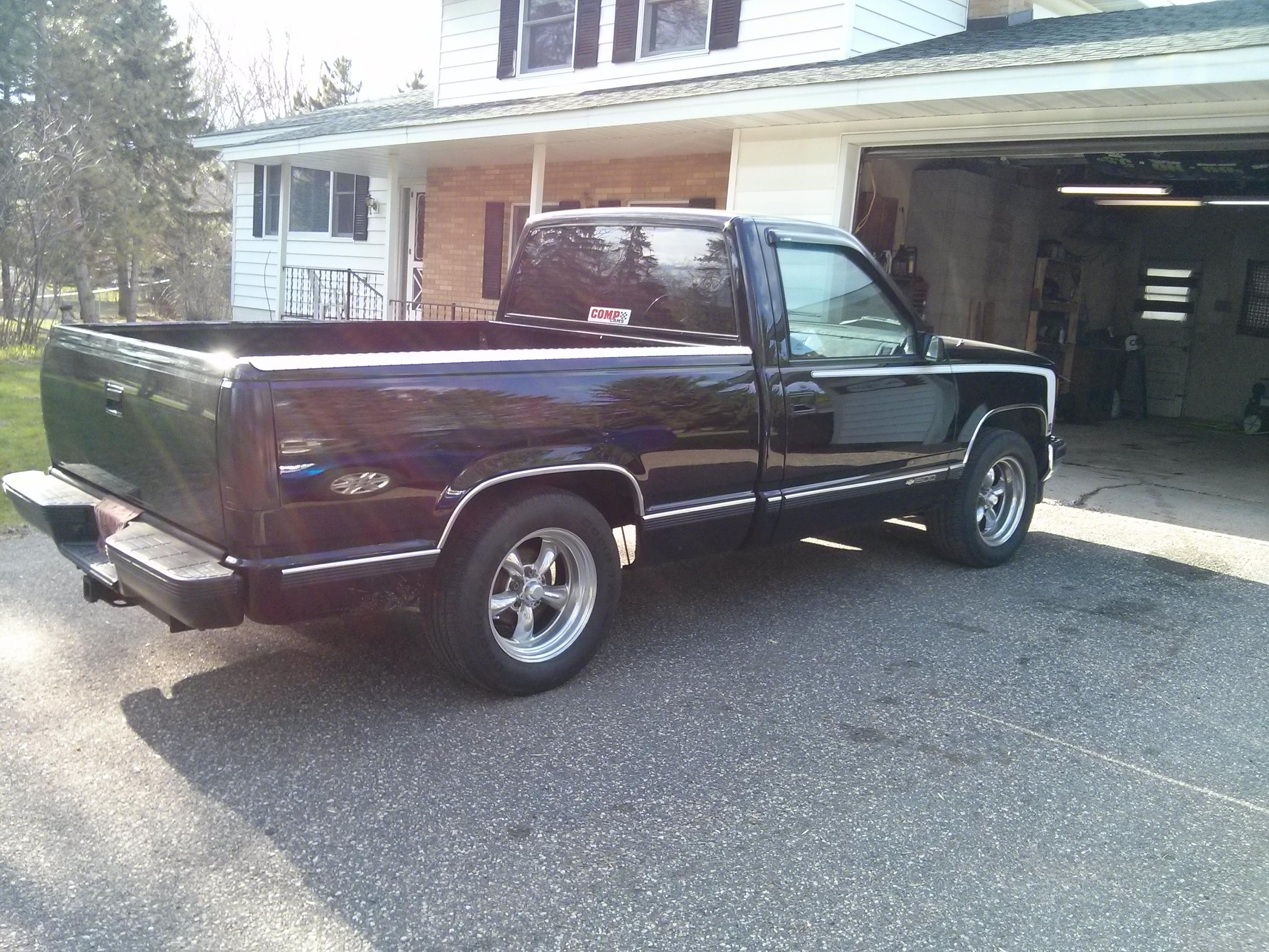 Got the new fan installed a couple weeks ago. It works great and keeps the truck cool so far. I hope its enough fan for summer temperatures. I just finished plasti dipping the rear bumper and the driver side wheels. I also took off the driver side chrome bed protector. I would like to plasti dip the wheel well moldings some time.