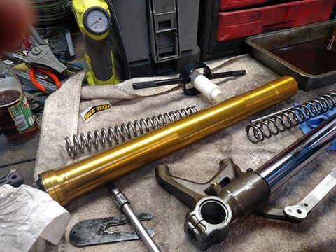 The suspension felt stiff and choppy as did my left knee after that race. Brandon from trackside came over and we looked at the forks, he decided they needed to come off. He tore them down and cleaned them up/changed fluid to the best of his ability and it did feel better for the next race for a bit. He did notice that the valving was probably damaged. Honestly I probably did that on accident this winter when I changed out the fork oil and didn't put the caps on correctly (I didn't back out the adjusters upon reinstall, so I probably crushed the valving). Rookie mistake, I'll own it.