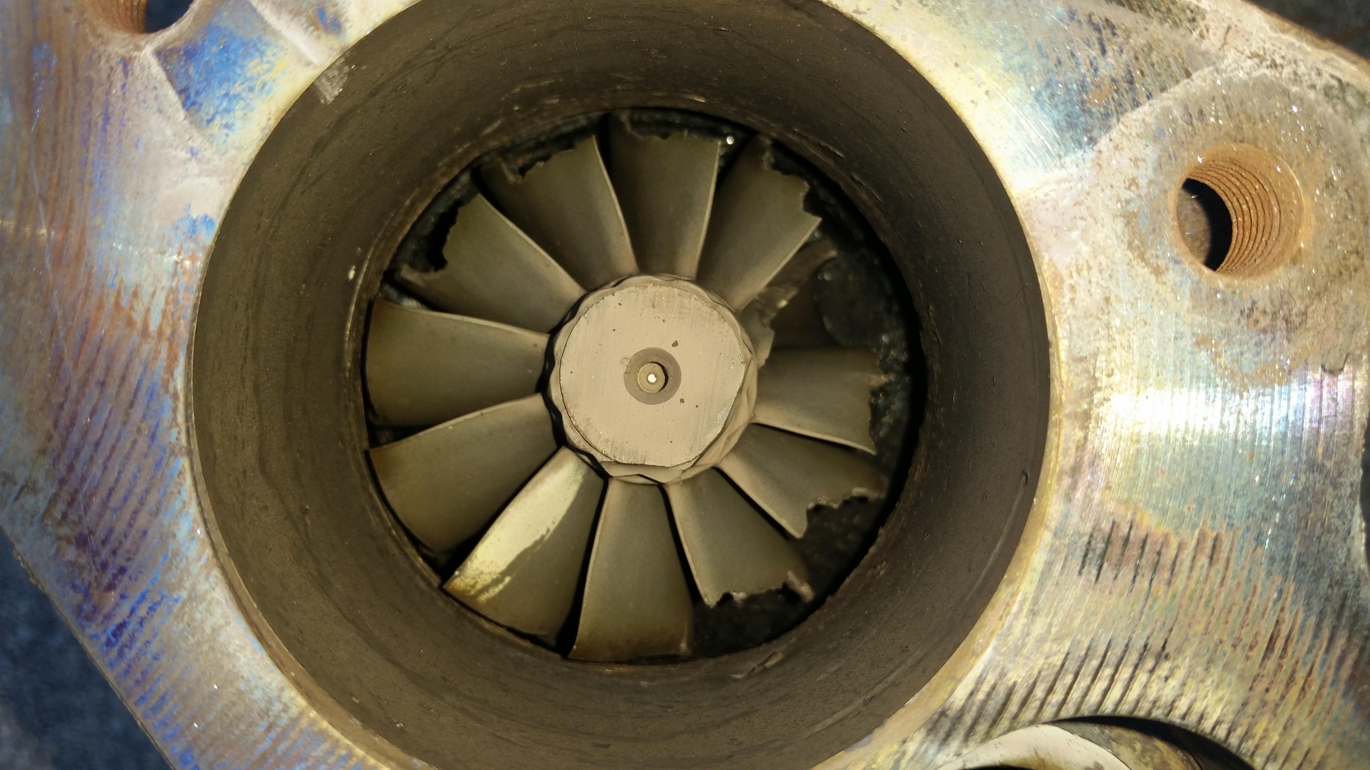 That doesnt look good at all, not sure what would have done that unless something went through it. At least it wasnt the compressor side that blew apart.