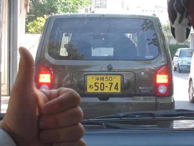 OK last picture I promise. This is just a pick of a car we were behind on the way there. They have some wierd names for cars here. That right there is the Dhaitsu NAKED!!