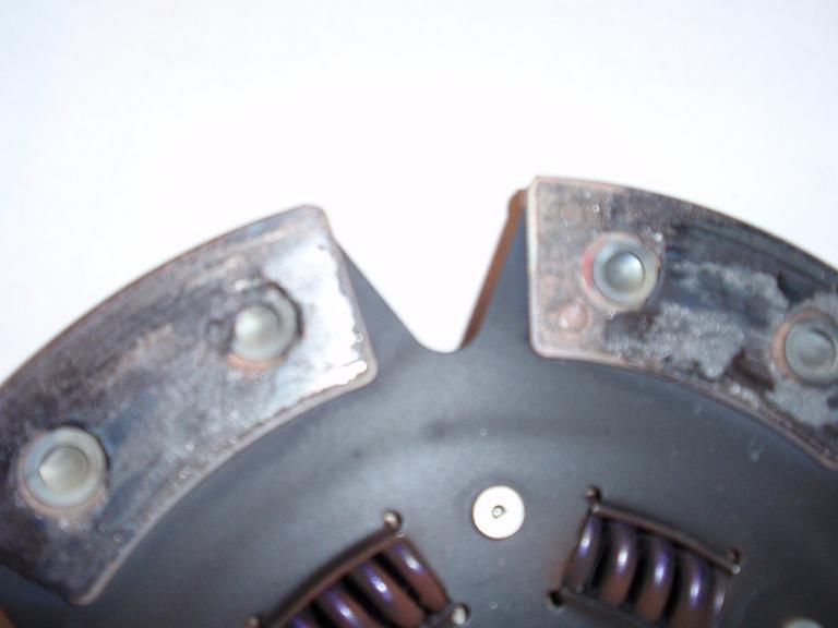 As you can see, there's lots of friction material just missing. One whole puck is missing all its friction material. And various others missing pieces of it.