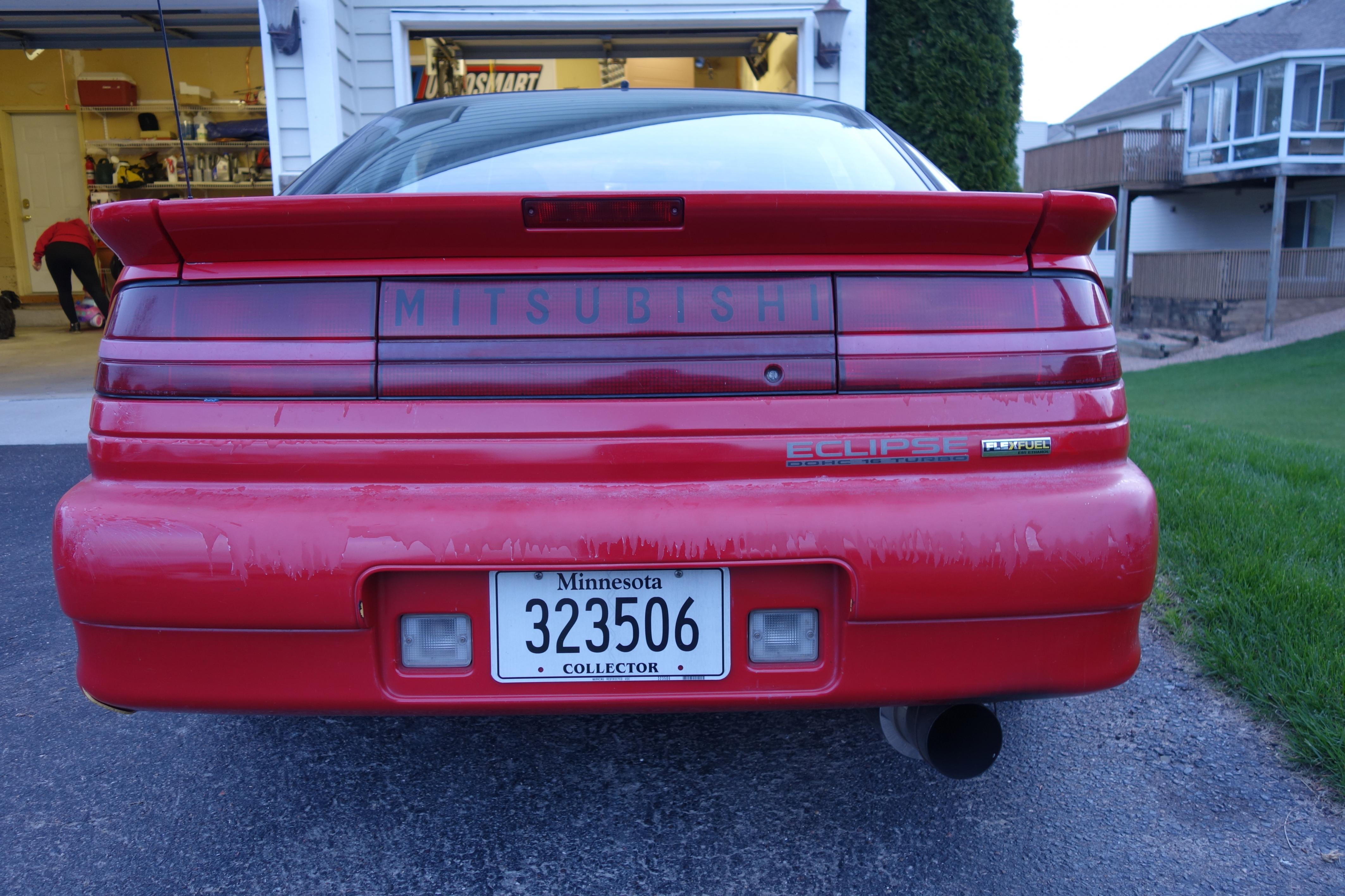 Drives: A paint faded Red/pink/black 90 eclipse. Collector Plates!