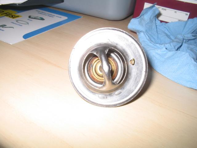 Brand new 160* thermostat, with two holes drilled in it now.