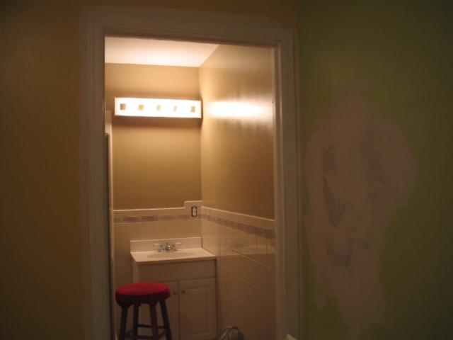 Got everything hung in the bathroom, like the medicine cabinet, mirror, and another little cabinet. The only thing left is the toilet, but the studs are too short so I have to figure that one out!