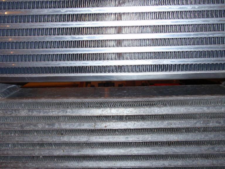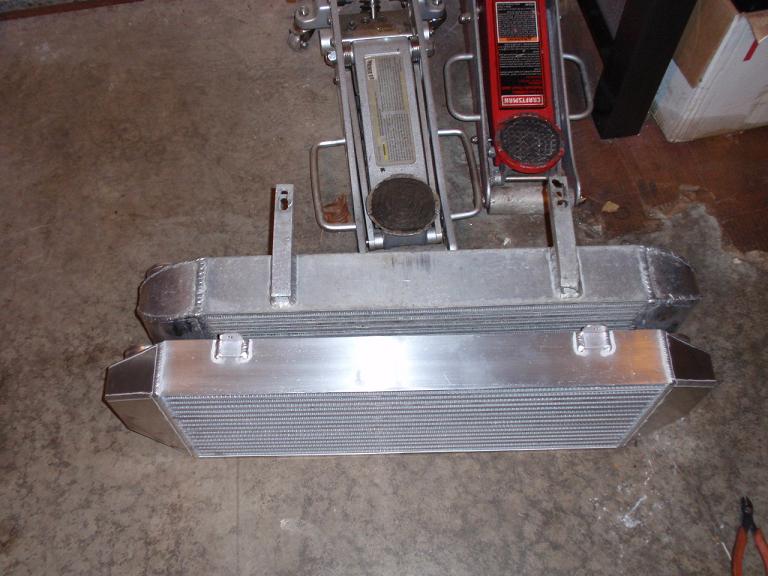 Out with the old, and in with the new. You can see the new is 2" longer, and .5" thinner. Also you can see the external fin spacing difference, and how the ETS is a lot more "breathable".