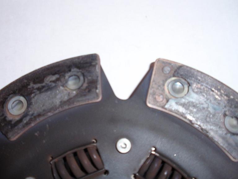 As you can see, there's lots of friction material just missing. One whole puck is missing all its friction material. And various others missing pieces of it.