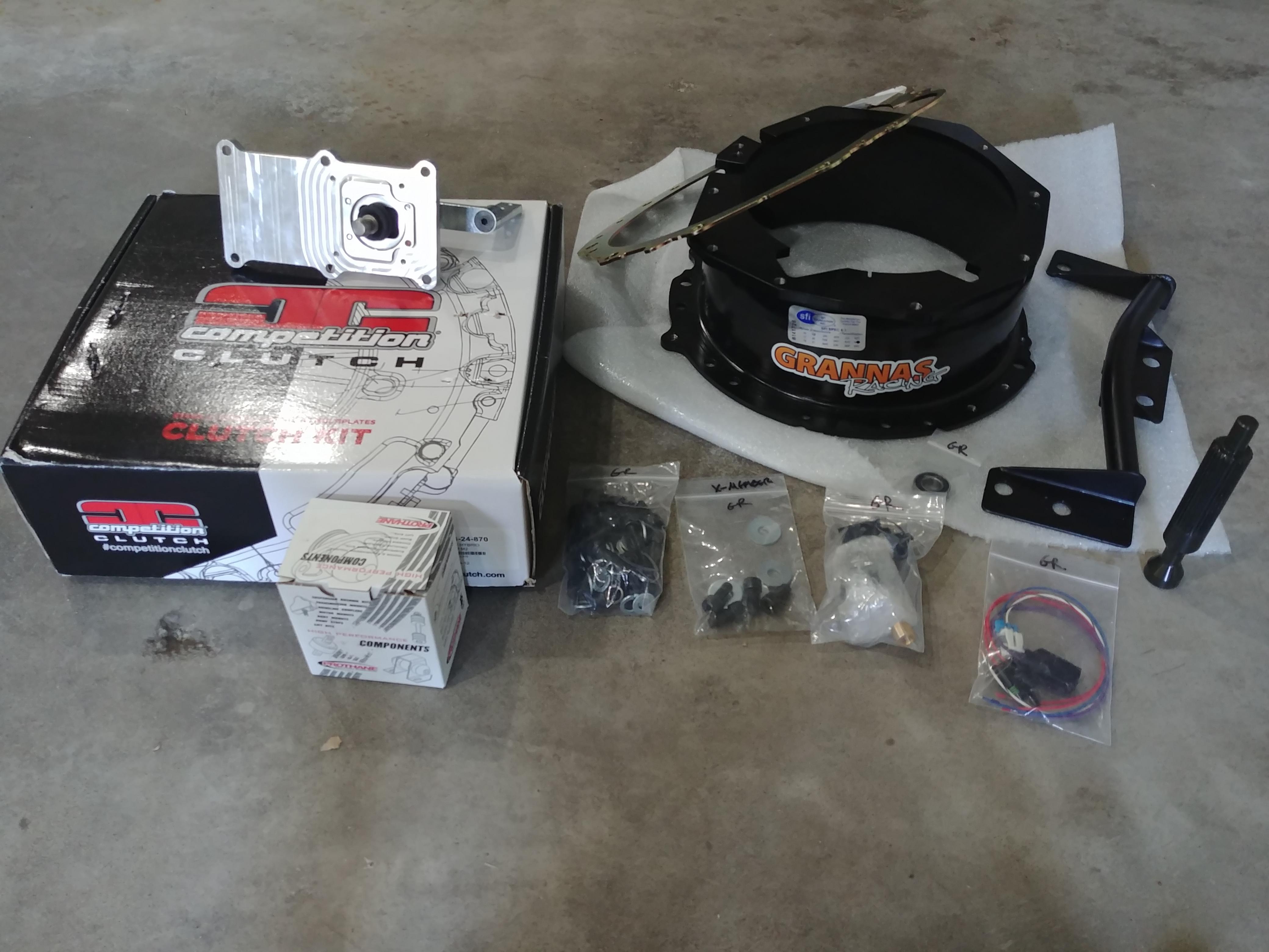 Been awhile since I updated. Big change for this year was changing out the CD009 setup to a Grannas Tremec Magnum T56 setup. My CD009 was starting to make a wierd grinding/buzzing noise when slipping the clutch which turned out to be a pilot bearing issue. But I also hated that twin disc. So I went with the GR700 kit (Magnum 6spd factory rated at 700tq). Comp Clutch MPC twin disc. This clutch is similar to the McLeod and very catered to high hp street cars. So it's meant to hold power and drive nice, which holy cow does it! Had a driveshaft made local at AA Driveline out of .100" DOM 2.5" steel. Also had to drop the diff and replace the 3.27 gears with 4.10's to match up with this new trans gearing.