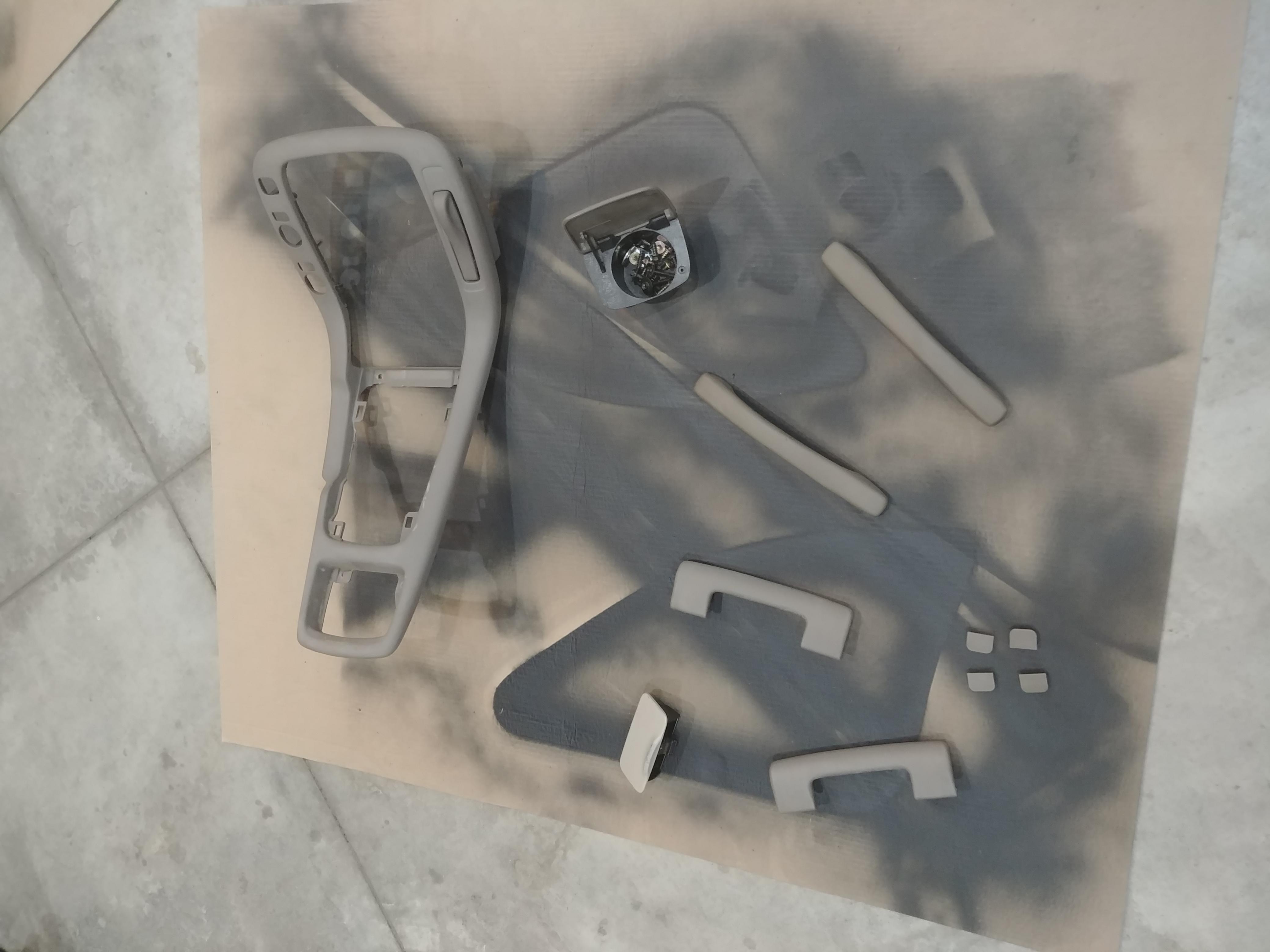 On the first pieces (rear large trim pieces) I ended up using a whole can of Black, and did about 7 light coats (5min between coats) until I felt like all the tan was hidden. On the second pieces I did it only took me 5 coats.