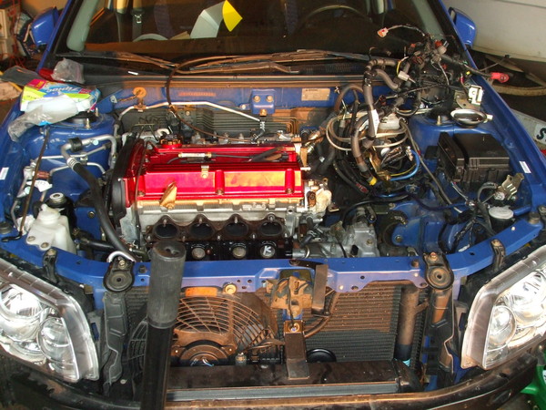 Got a lot done today! motor and tranny are in the car and going to pick up the remainder of the gaskets from mitsu tomorrow. Still a lot to do but the hard part it over.
