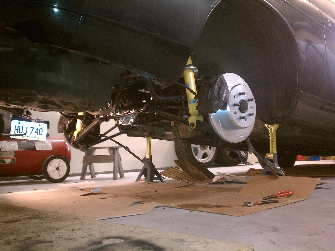 Suspension is on. New rotors are on. Calipers on and bolts are TIGHT (for those who were on the fall cruise haha). Tightened up everything!