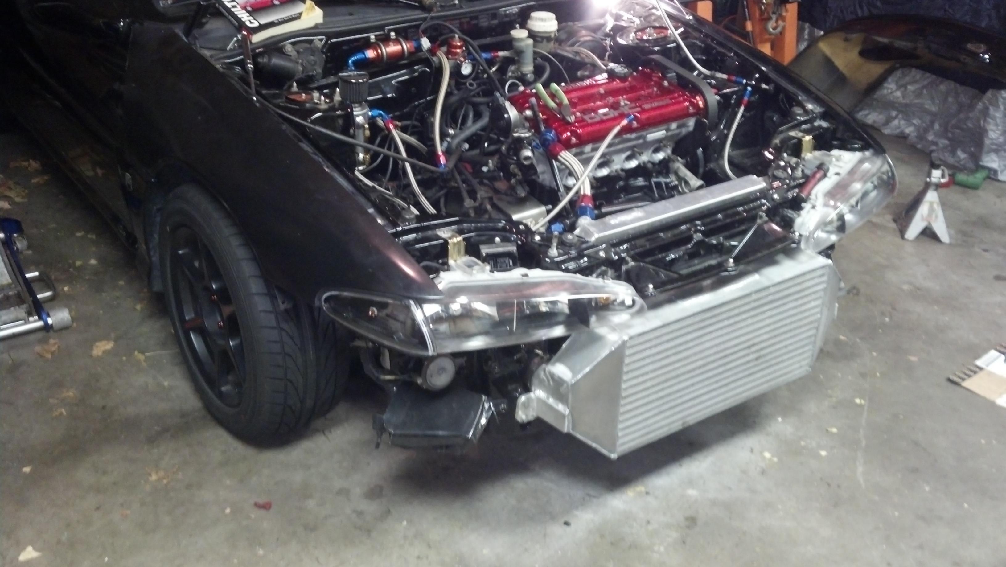 Well I got pretty much everything thing done I can for now. It's finally sitting on all fours after 7 months of being on jack stands :-) now I just need a turbo, oil cooler, and a few other miscellaneous things and she'll be ready to fire up.
