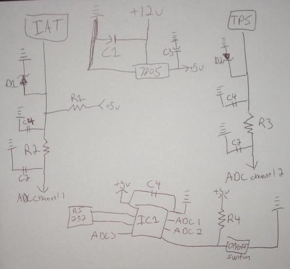 IC1 needs to be programmed with my code, I'll do it for like $15 w/chip included.This works in my simulator, but some of the ceramic caps may need slightly different values in the actual vehicle.Everything should be available at radio shack, except for the 12F675, I have a million of these anyway.You also need a switch and a DB-9 serial plug and possibly a max233 chip depending on your computer.Total parts should be around $25-$30.I can program the temp and tps values when I burn the chip or you can give me a little $$$ and I'll give you the above software.