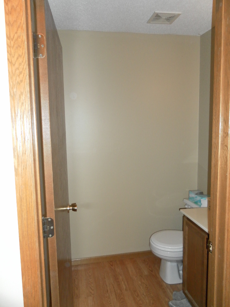 Bathroom, the linoleum flooring will be removed and replaced with tile. Haven't decided yet if I'm going to tile up the walls like I did downstairs, but I'm leaning towards not. New light fixture. Paint. New shower curtain rail (got one of those curved one from Menards for $10). New Shower head. And for now that's probably it.