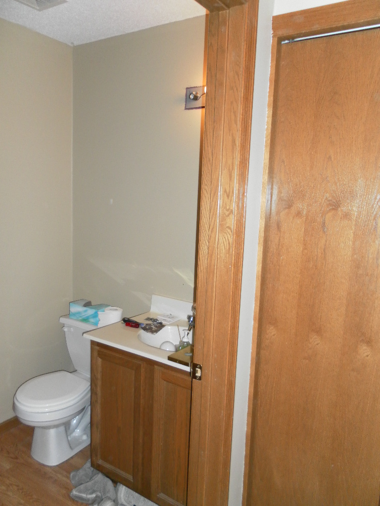 Here's the before pics. What you can't see in the pics is that the paint on the walls is pretty bad. Like he just did one coat, and didn't even attempt to keep the paint off the trim.