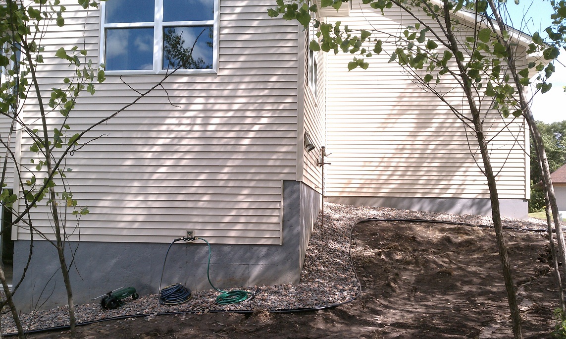 We are roughed in for a future irrigation system, meaning they ran a larger water feed to the house, and the pipe is on the outside of the house if we ever get one. You can see it in some of the older pics, big brass piped behind the garage running down the side of the house exterior.