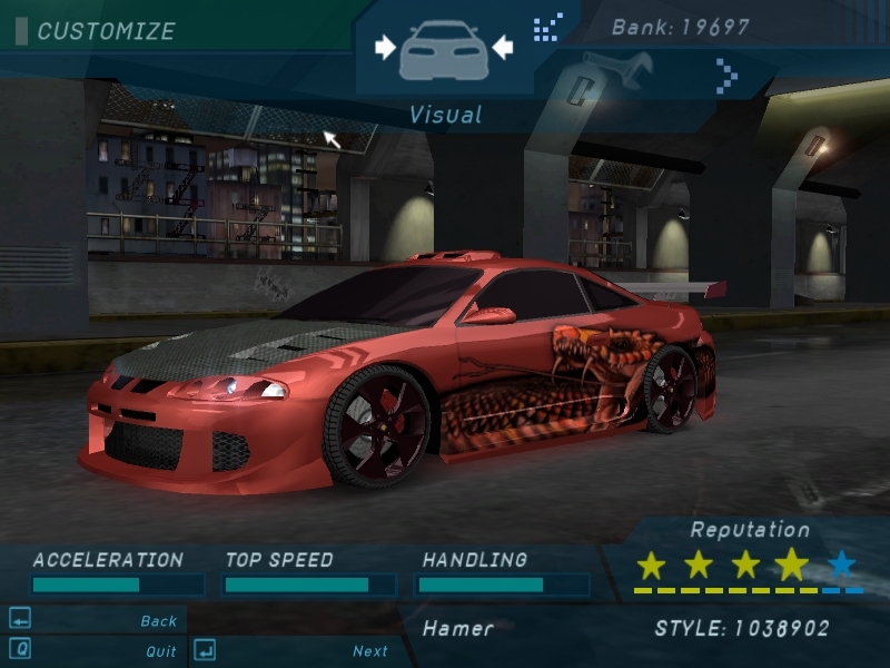 The RSX is poop compared to the Eclipse. I have noticed that the Eclipse can hang with just about any car in the game. Well up until where I am at least, I dunno about beyond this. Cuz I just unlocked the Skyline a little bit ago, and the Elipse still rivals that. Good shit. Only fuck up that I did notice about it was that if it is a GSX, why did it come stock with GST rims? That and that it has clear bumper lenses too. But I aint complaining