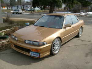 Hi everyone. I have a gold 4dr integra that I want to get rid of. It very nice, clean, and jdm out. No rust but there bubble. Come with 17 inch rim, 2 racing seat (red), drop with some skunk 2 coilover, motor is a jdm B16A with a LS tranny. It's a Obd0. PWO ecu. There more but can't think of it right now. Cars looks better in person. I would like $4,000 or B/O. Might consider trade also. Any question let me kow.
