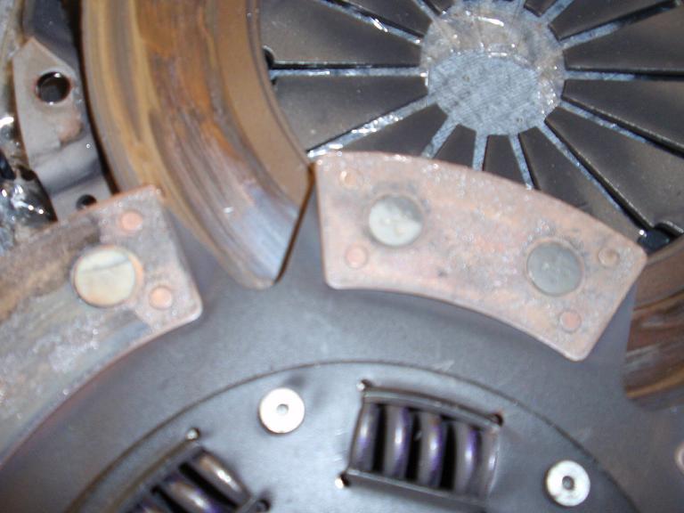 As you can see, there's lots of friction material just missing. One whole puck is missing all its friction material. And various others missing pieces of it.