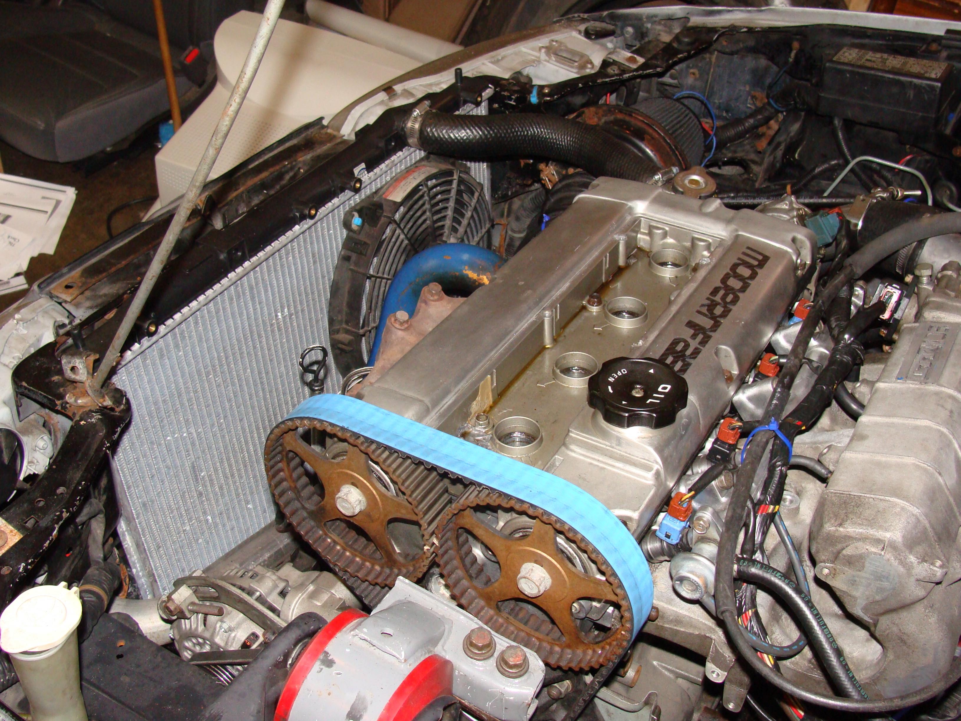 I bought the car from my buddy about 8 months ago, The car smoked bad and was a complete slug. I took it apart and replaced the motor with the motor that i had for my last car, I also replaced the turbo that was on there. When the motor was out, I pressure washed the whole engine bay and re-painted it gloss black.